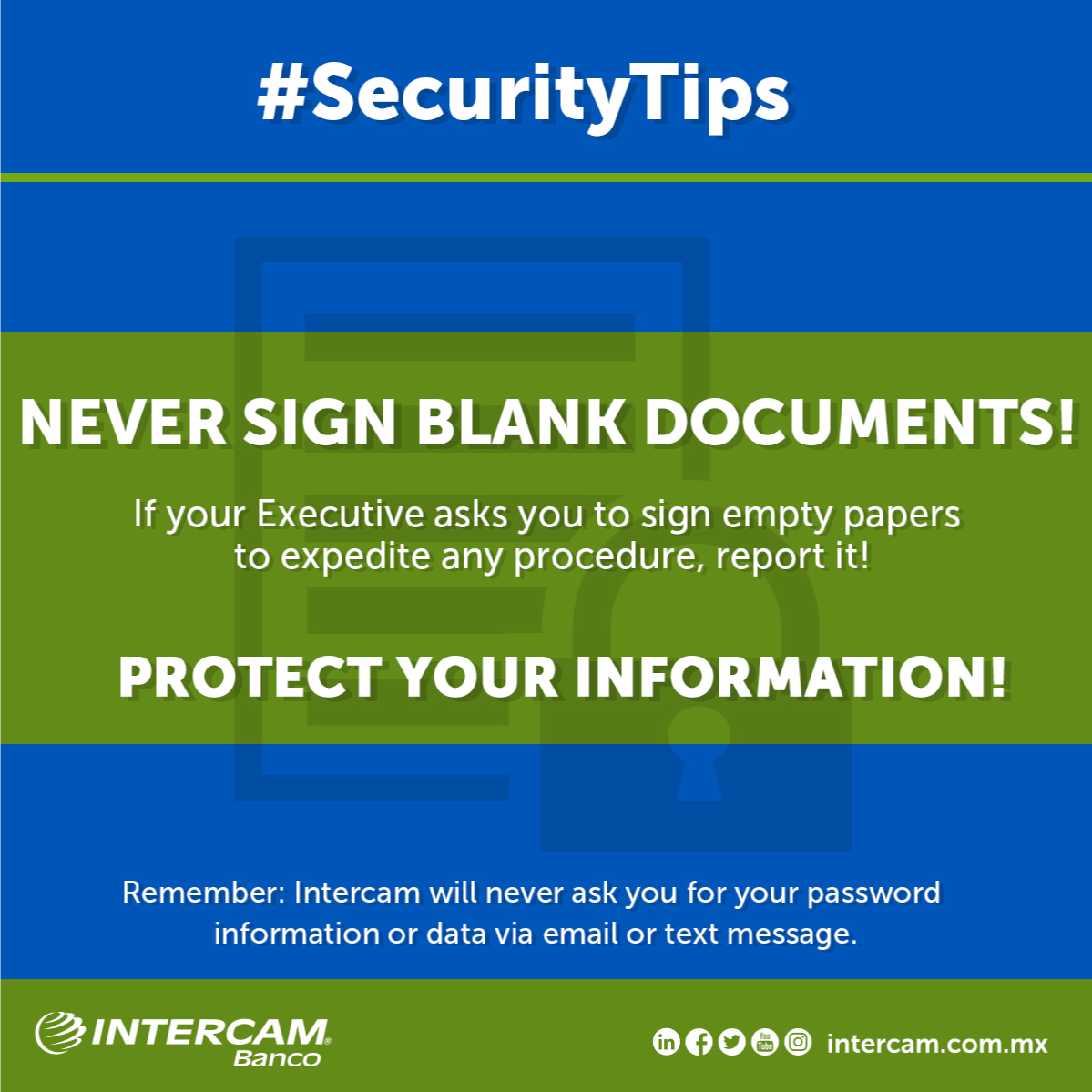 - Install an anti-virus program that protects you from involuntary download of files that may jeopardize your information.