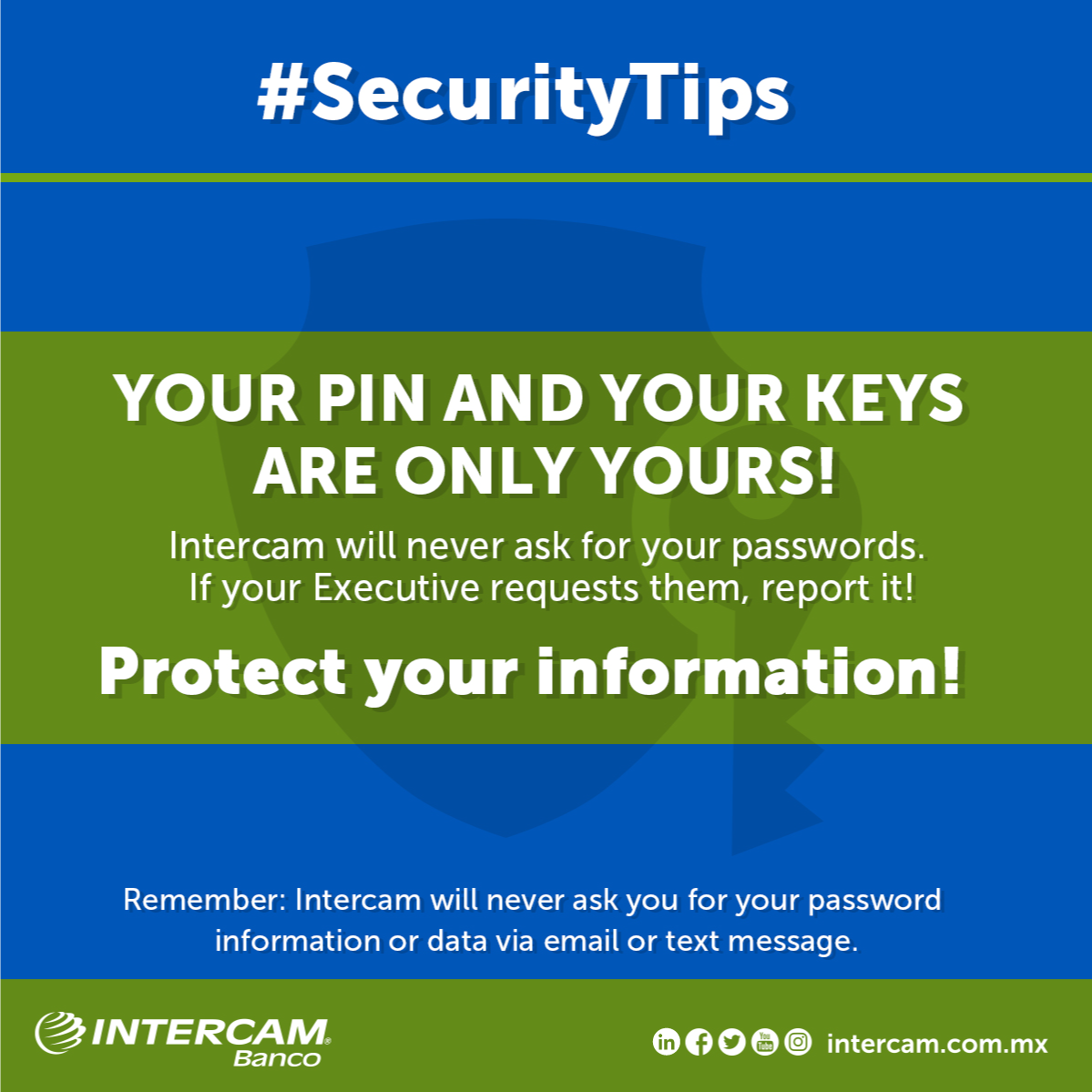 - We will never ask for sensitive information like your PIN, TOKEN values or the security numbers of your cards